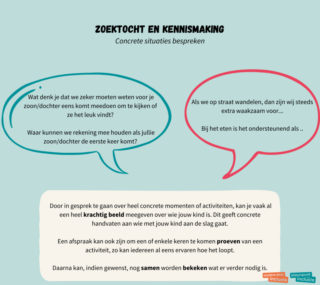 Vaak zitten zowel ouders als vrijetijdsorganisaties met heel wat vragen, onzekerheden of verwachtingen om inclusie in de vrije tijd waar te maken. Hoe ga je hierover op een constructieve en positieve manier met elkaar in gesprek?