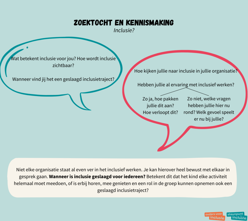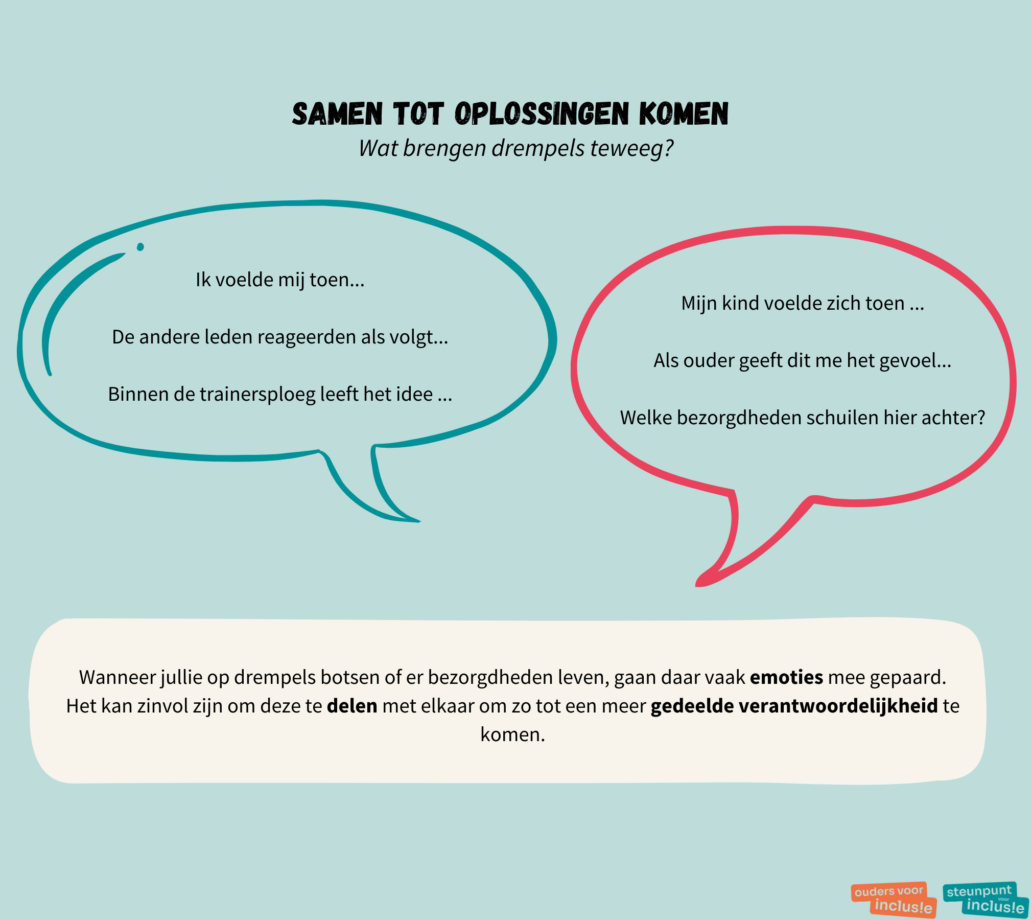 Als organisatie is het ook best spannend als een ouder met een vraag naar inclusie bij jullie aanklopt. Wat verwachten de ouders precies? Welke aanpassingen kunnen jullie doen? Hoe zal dit onthaald worden in de animatoren- of trainersploeg?